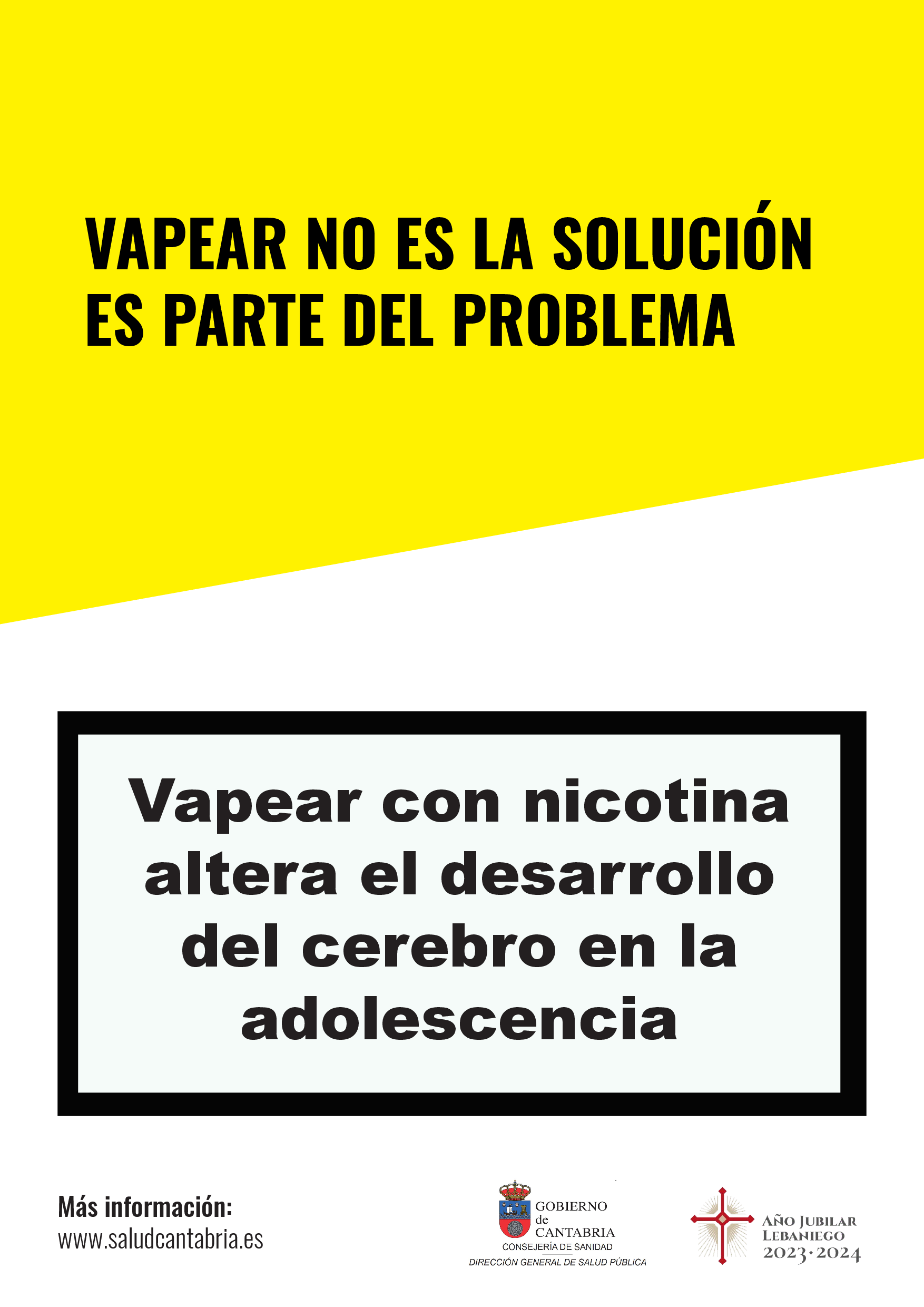 Este año, el 31 de mayo la Dirección General de Salud Pública ha elegido el lema "Vapear no es la solución, es parte del problema", para sensiblizar a la población de la importancia de no banalizar el uso de vaper o cigarrillos electrónicos, dispositivos que están acercando a los menores al consumo de tabaco, a la inhalación de sustancias tóxicas y a múltiples riesgos para su salud.