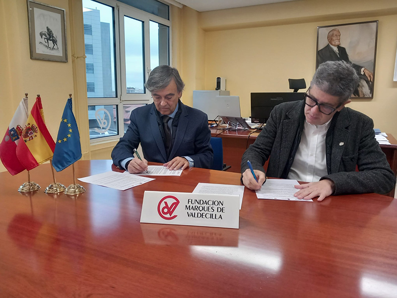 El gerente de la Fundación Marqués de Valdecilla (FMV), José Francisco Díaz, y el presidente del Colegio Profesional de Ciencias Políticas y Sociología de Cantabria, Francisco Sierra, han rubricado este jueves el convenio marco de colaboración entre ambas entidades que permite el desarrollo de actividades conjuntas relacionadas con la investigación, formación y sensibilización en materia de Salud Pública.