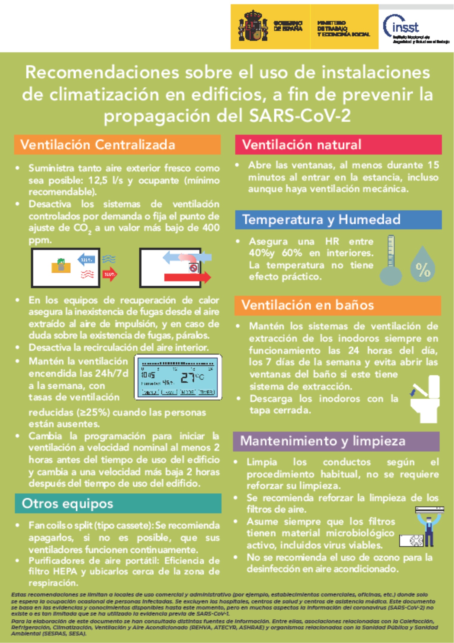 RECOMENDACIONES SOBRE EL USO DE INSTALACIONES DE CLIMATIZACIÓN EN EDIFICIOS, A FIN DE PREVENIR LA PROPAGACIÓN DEL SARS-CoV2  ( imagen)